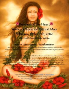 A women's medicine retreat, drawing upon community here in Maui as well as the women in Canada, Washington and Minnesota who have been attending our retreats for the last 5 years. We bring in somatic healing modalities, expressive art therapy, silence IFS, archetypal work and dance as preparation and integration for the deep work we do during 2 days of medicine. We augment the journey days with live music, singing, ritual and inner work (women wear eye masks and are lying on mats for the day). We require an intake form and intake conversation before we allow women to join, ensuring we have a stable, grounded and regulated group to support ultimate repair and healing. :)[…]